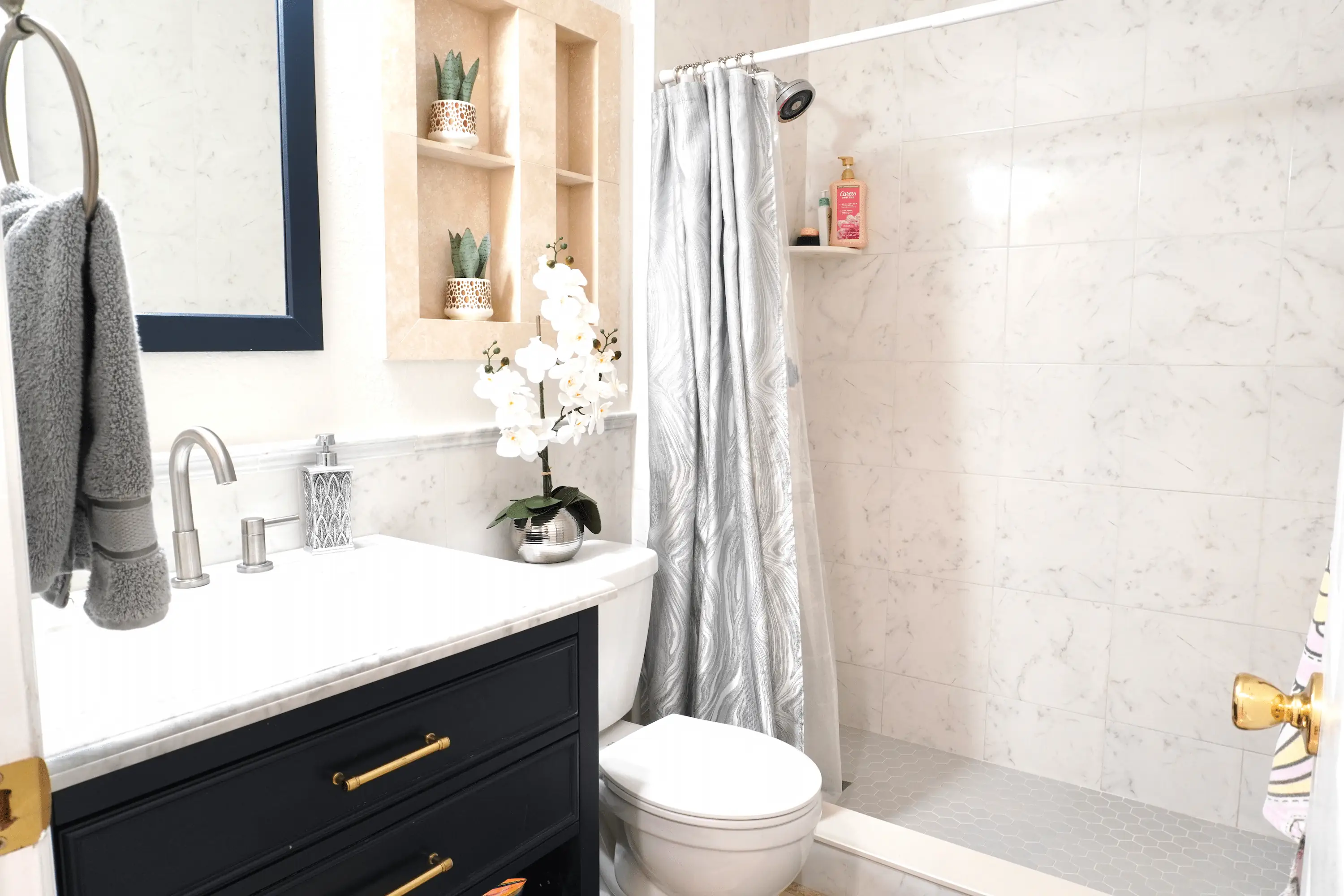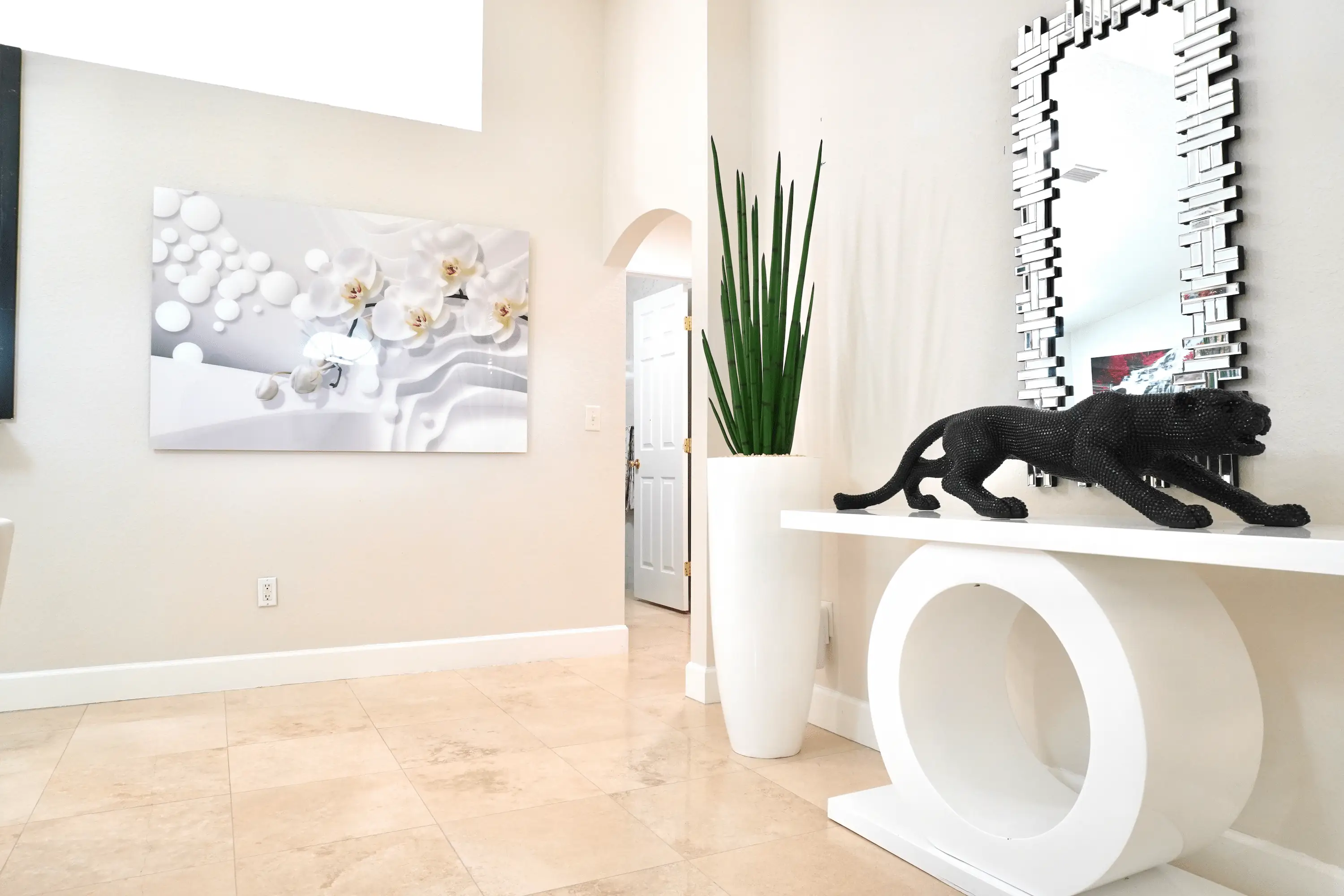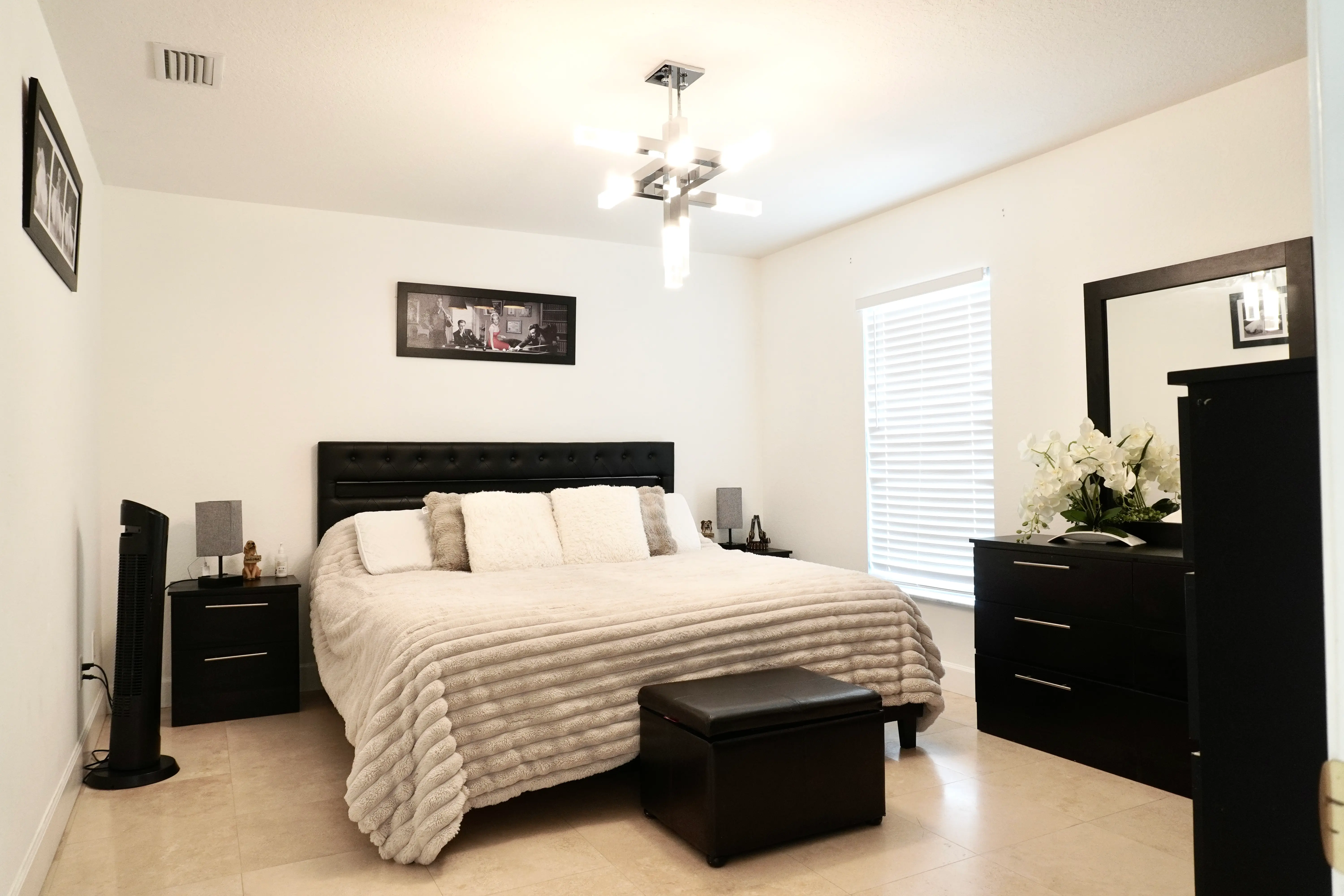 The primary suite provides a peaceful retreat with ample closet space and a beautifully renovated en-suite bathroom. Two additional bedrooms and a full guest bath offer plenty of flexibility for family, guests, or a home office. Outside, the fenced corner lot showcases mature landscaping, decorative rock gardens, and a tiled patio perfect for entertaining or enjoying Florida’s year-round sunshine.